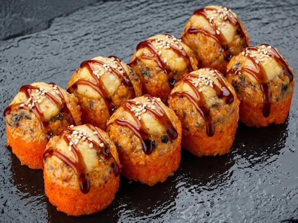 ЗАПЕЧЕННЫЙ РОЛЛ С ЛОСОСЕМ ТЕРИЯКИ