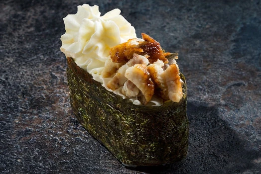 ЗАПЕЧЕННЫЕ СУШИ СО СПАЙСИ СОУСОМ Окунь