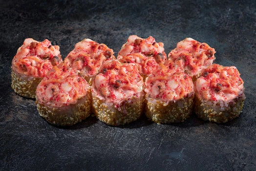 ЗАПЕЧЕННЫЕ СУШИ СО СПАЙСИ СОУСОМ Креветка тигровая